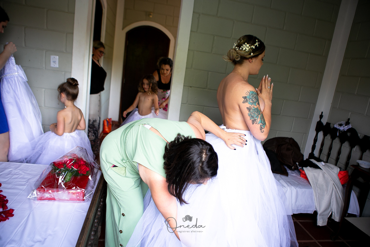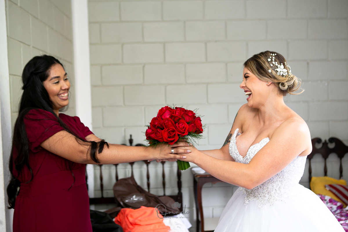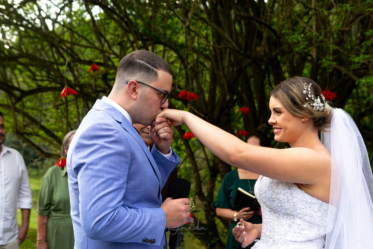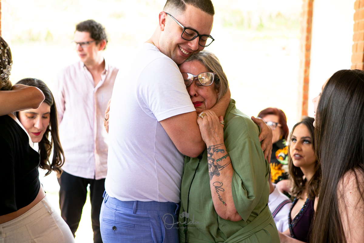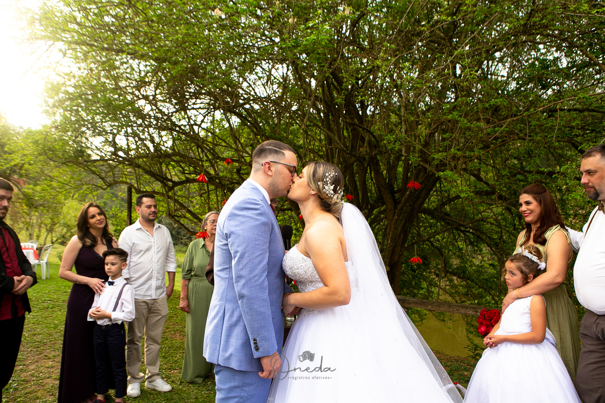 A recepção foi em uma chácara em Santa Isabel, bem intimista e para os mais íntimos.