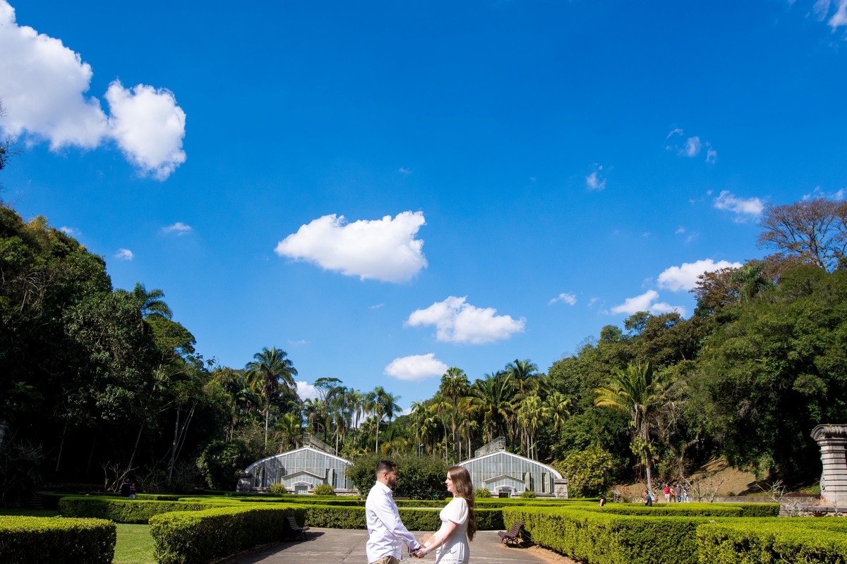 Ensaio pre wedding do casal Emília e do Heber foi no Jardim Botânico de SP.
