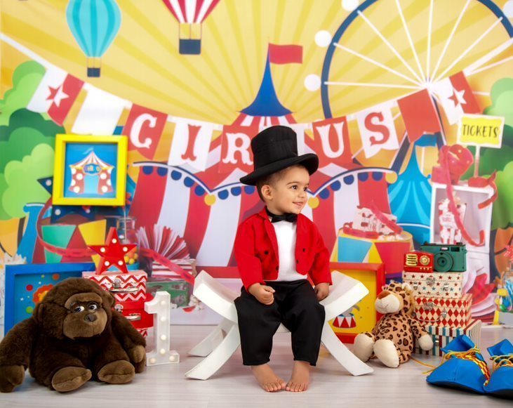 Ensaios infantis com cenário.